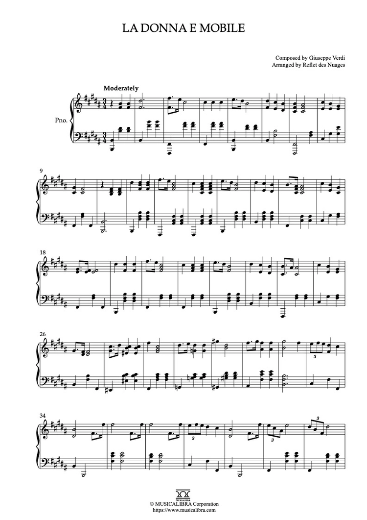 [PIANO SOLO 악보] La donna e mobile 피아노 편곡 악보