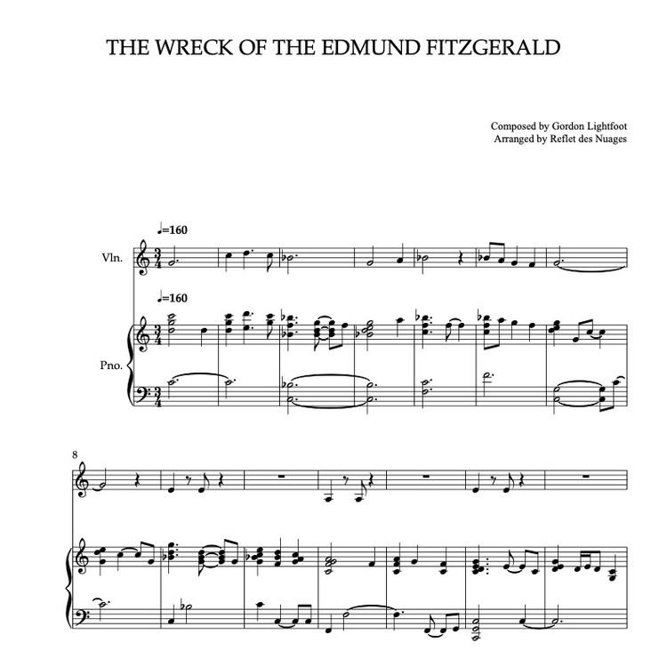 The Wreck of the Edmund Fitzgerald, 바이올린 피아노 듀엣 실내악 앙상블 편곡